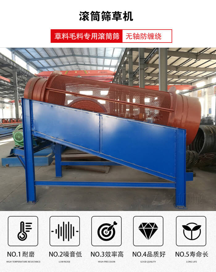 產(chǎn)品簡介:滾筒篩草機(jī)是根據(jù)草料毛料專用滾筒篩,有大型和小型兩種。繼承了單層滾動篩的良好篩分優(yōu)勢,內(nèi)層棒條篩網(wǎng),外層金屬細(xì)密編織網(wǎng),解決了大塊物料對滾筒篩網(wǎng)的壓力。廣泛應(yīng)用于篩草行業(yè)的喜愛。