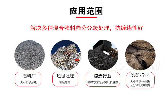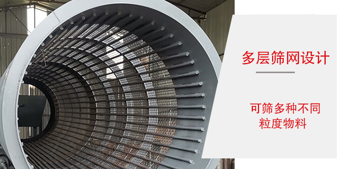 4、采用多層篩網(wǎng)設(shè)計(jì),可篩多種物料。篩下產(chǎn)品大小于100mm,中間10~50mm,細(xì)可達(dá)≤3mm以下。