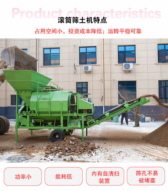 滾筒篩土機(jī)是針對(duì)于土壤進(jìn)行篩分的專屬性篩分設(shè)備,針對(duì)于土壤中的石子,雜草進(jìn)行篩分,除雜的作用,幫助一些科研農(nóng)業(yè)篩出優(yōu)質(zhì)細(xì)膩的土壤。該設(shè)備結(jié)構(gòu)與普通滾筒篩結(jié)構(gòu)大致相同。