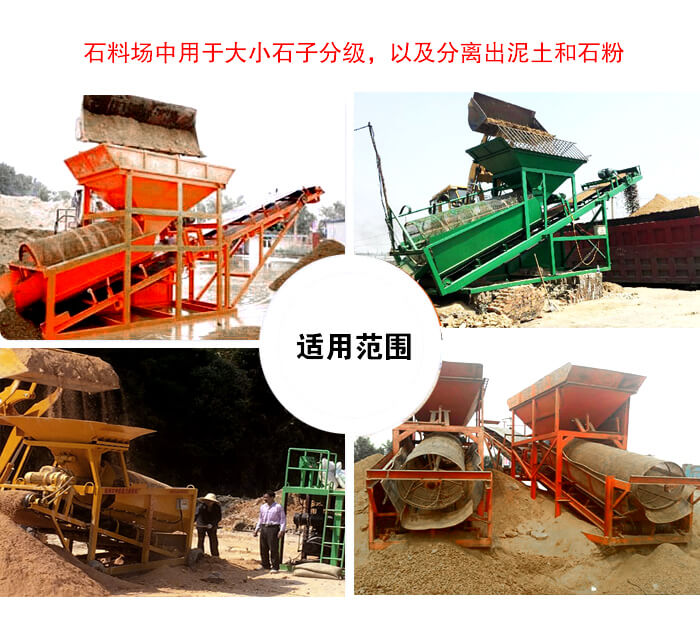 滾筒篩土同時(shí)對(duì)物料的適應(yīng)能力強(qiáng),粘性、濕度大、臟、雜等各種性質(zhì)的物料都能篩分。石料場(chǎng)中用于大小石子分級(jí),以及分離出泥土和石粉。化工選礦行業(yè)用于大小塊狀物分級(jí)及分離粉狀物質(zhì)。