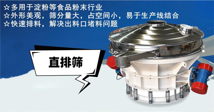 產品簡介:直排篩屬于高產量篩分設備,能夠快速排料解決出料口堵料問題提高產量,可在600MM至1800MM之間選擇。淀粉專用直排篩價格根據直排篩的型號和材質而定。